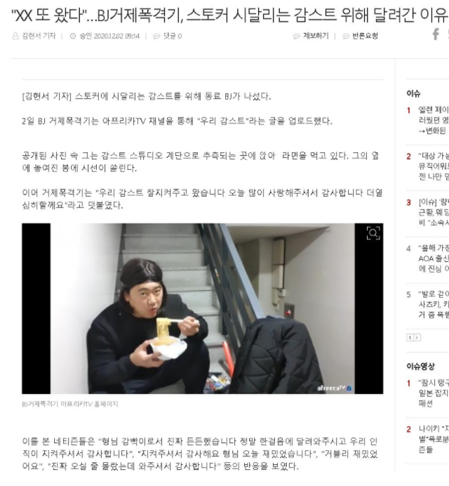 이 모습을 보고 BJ거제폭격기가 감스트 집을 찾아가 지켜준것으로 보이네요!!