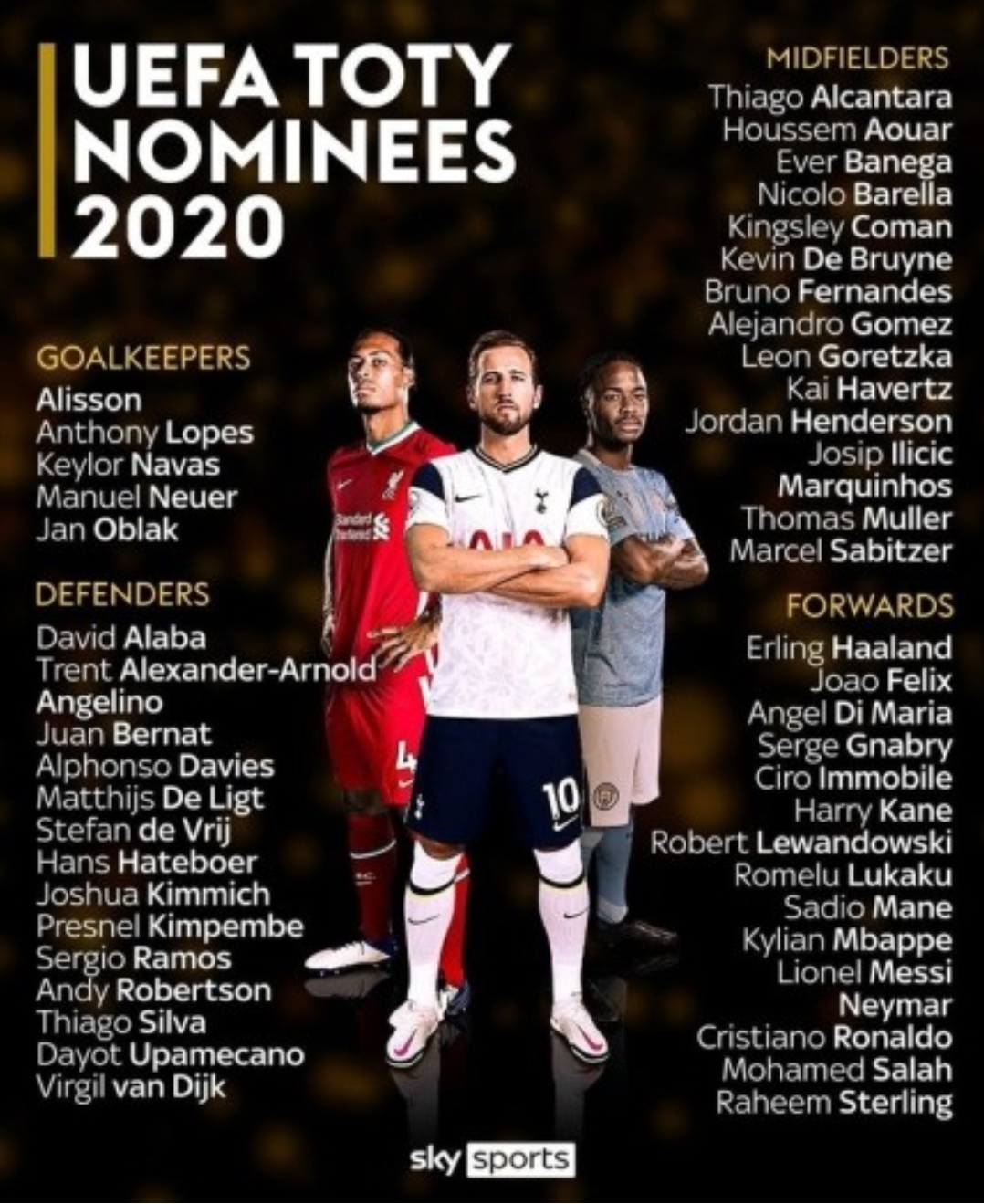 ['손흥민 없는..' 2020 UEFA 올해의 팀 후보 명단]