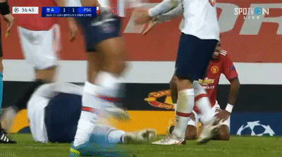 프레드에 태클걸다 발 밟히고 옐로받은 파레데스.gif