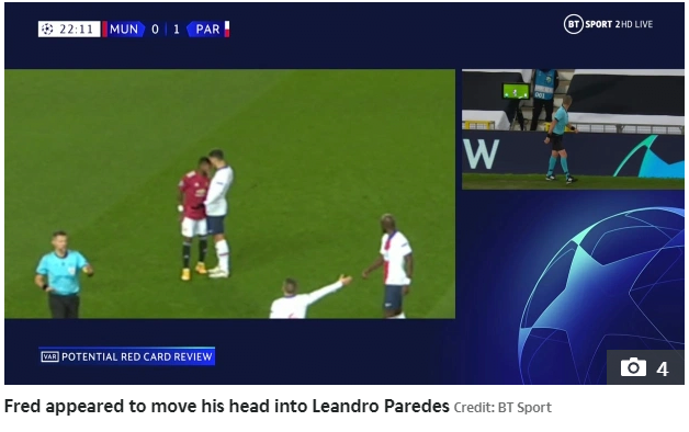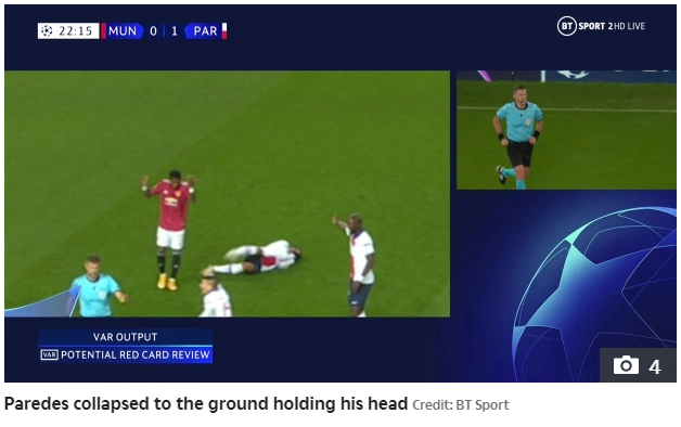PSG의 레안드로 파레데스와 박치기로 보이는 행위를 한 뒤에 말이다.