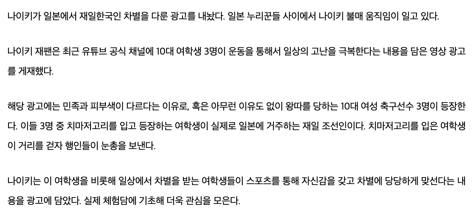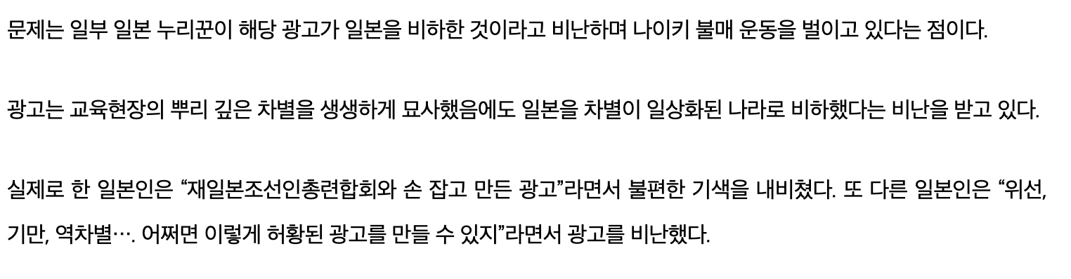 ['재일 한인 소녀 등장' 일본에서 논란 중인 나이키 광고]