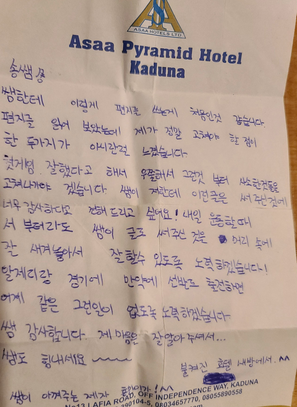 | 17세 손흥민이 코치에게 쓴 편지 | |