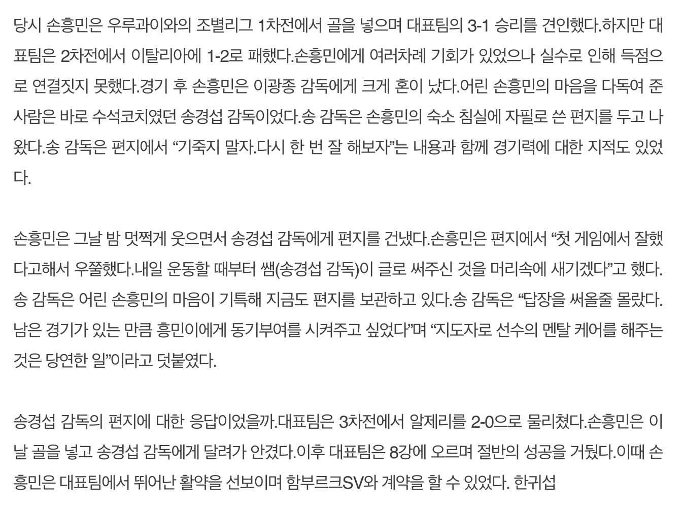 [17세 손흥민이 코치에게 쓴 편지]