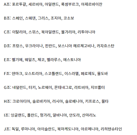[[오피셜] 2022 카타르 월드컵 유럽 예선 조 추첨 결과]