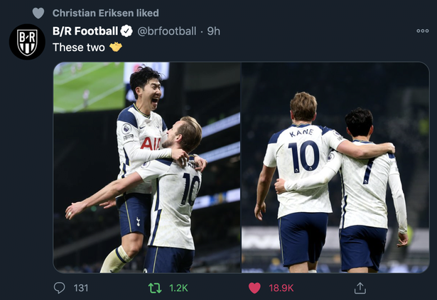 (손흥민과 케인의 사진에 좋아요를 누른 에릭센)