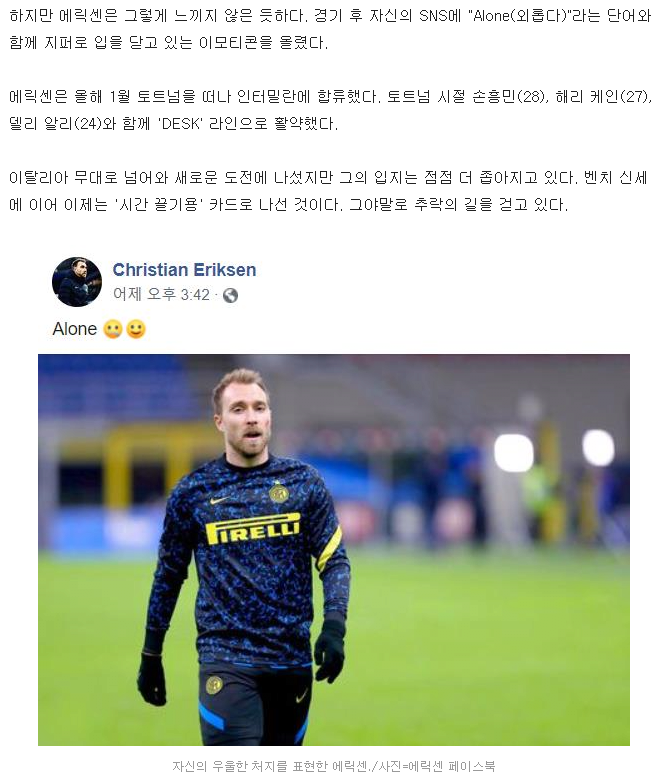 현재 에릭센이 인터 밀란에서 입지가 좋지 않다보니.. 뭔가 더 짠하네요.