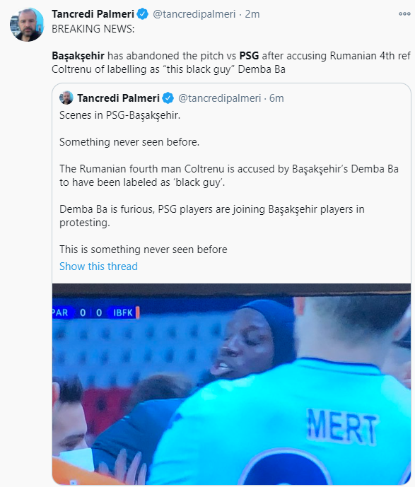 [챔스 심판이 인종차별.. PSG-바샥셰히르 선수들 경기 거부 사태]