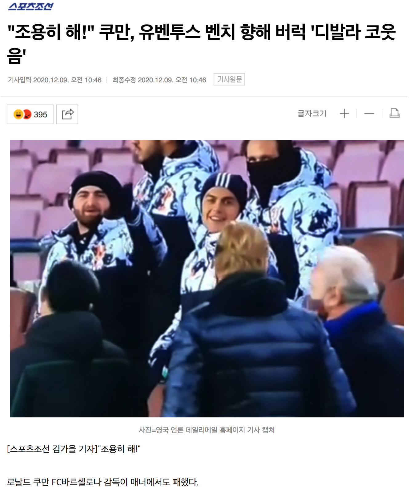 ........하지만 이는 유벤투스 선수들을 침묵시키는 데 별 도움이 되지 않았다. 파울로 디발라는 쿠만의 반응을 비웃었다. 오히려 쿠만을 더욱 짜증나게 하는 것처럼 보였다'고 전했다.....