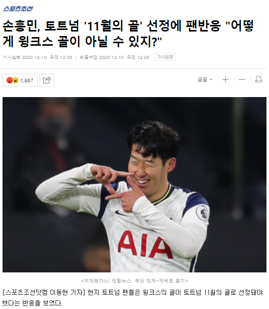 [토트넘 팬 '한국인들은 토트넘이 아니라 손흥민을 응원할 뿐']