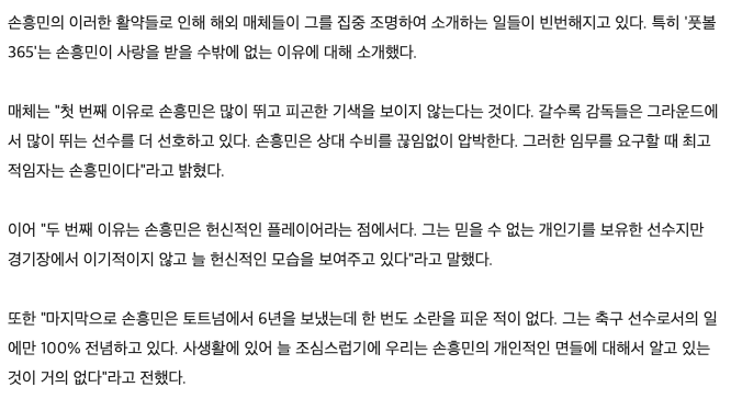[영국 매체, 손흥민이 사랑스러운 3가지 이유는..]
