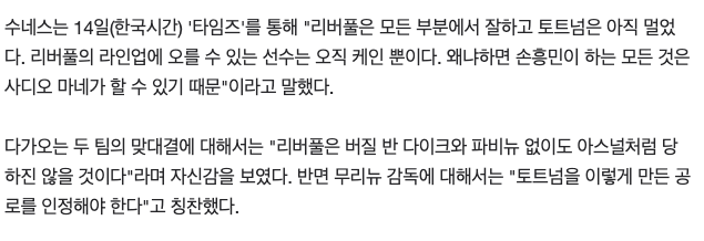 (이번 주 목요일 토트넘 VS 리버풀 재밌겠네요ㅋㅋ 벌써부터 신경전이)
