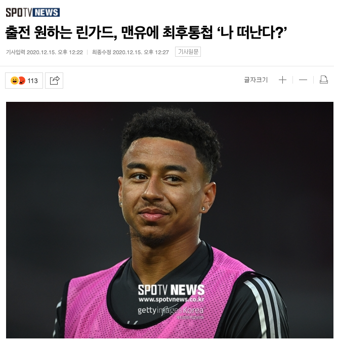 "나 떠난다?", 린가드 맨유에 최후의 통첩