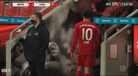 전반 30분에 교체 투입된 사네는 38분 뛰고 다시 교체 아웃됨.