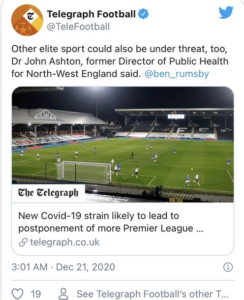 [[텔레그래프]신종 코로나 확산으로 EPL 연기 가능성이 있음]