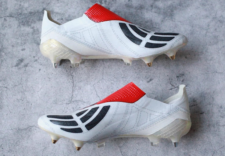 이번에 그가 커스텀 한 축구화는 2002년 출시된 '프레데터 매니아'의 외형을 가진 엑스 고스티드+입니다. 충격적이죠?