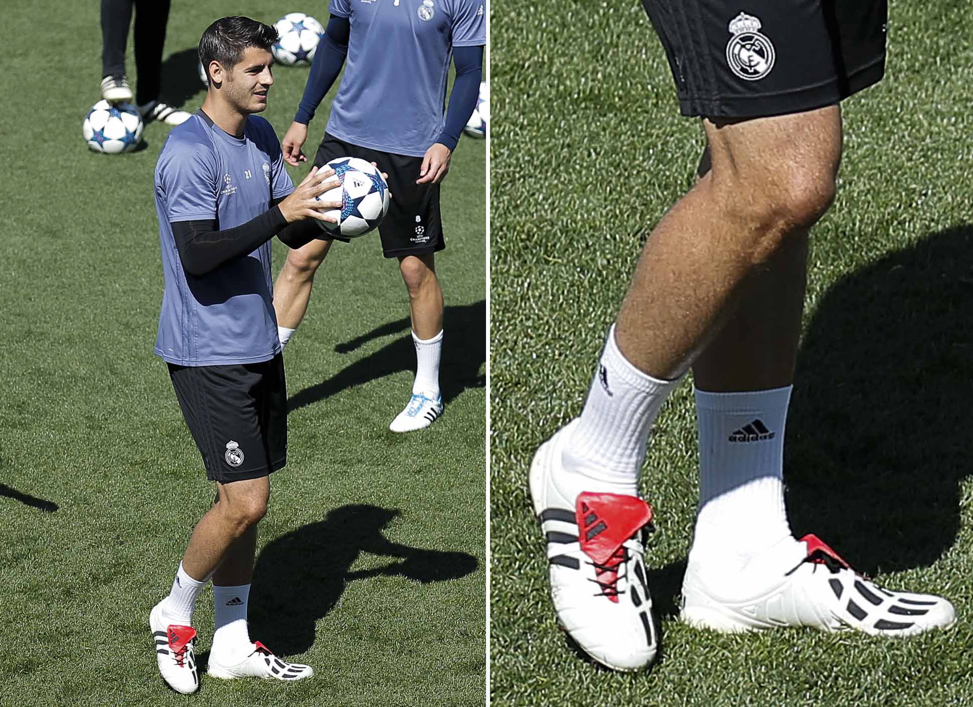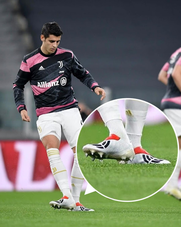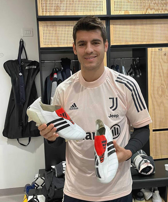 모라타가 이 축구화를 직접 신은 모습입니다.
