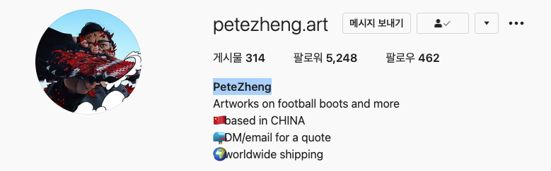 중국의 축구화 커스텀 전문가 @petezheng.art는 인스타그램을 통해 놀라운 사진을 공개했습니다.