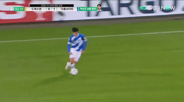 윙어로 포변한 백승호의 자로 잰듯한 완벽한 크로스.gif