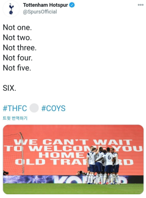 맨유전 6골 넣을 당시 맨유를 놀렸던 토트넘 공식 트윗ㅋㅋㅋㅋㅋㅋㅋㅋㅋㅋ
