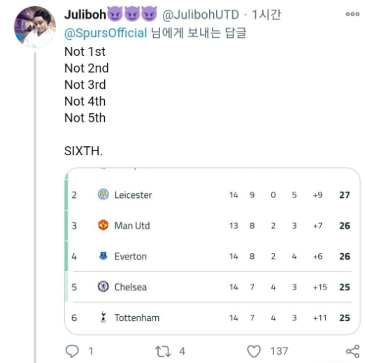 [맨유한테 6골 넣고 놀렸던 토트넘 트위터 최신근황ㅋㅋㅋ]