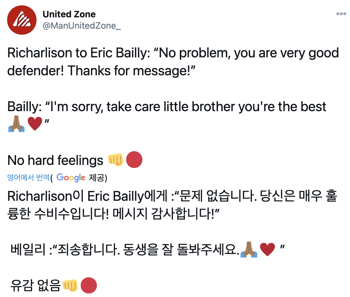 히샬리송은 교체 아웃까지.. 아래는 히샬리송에게 사과한 바이 그리고 훈훈한 마무리