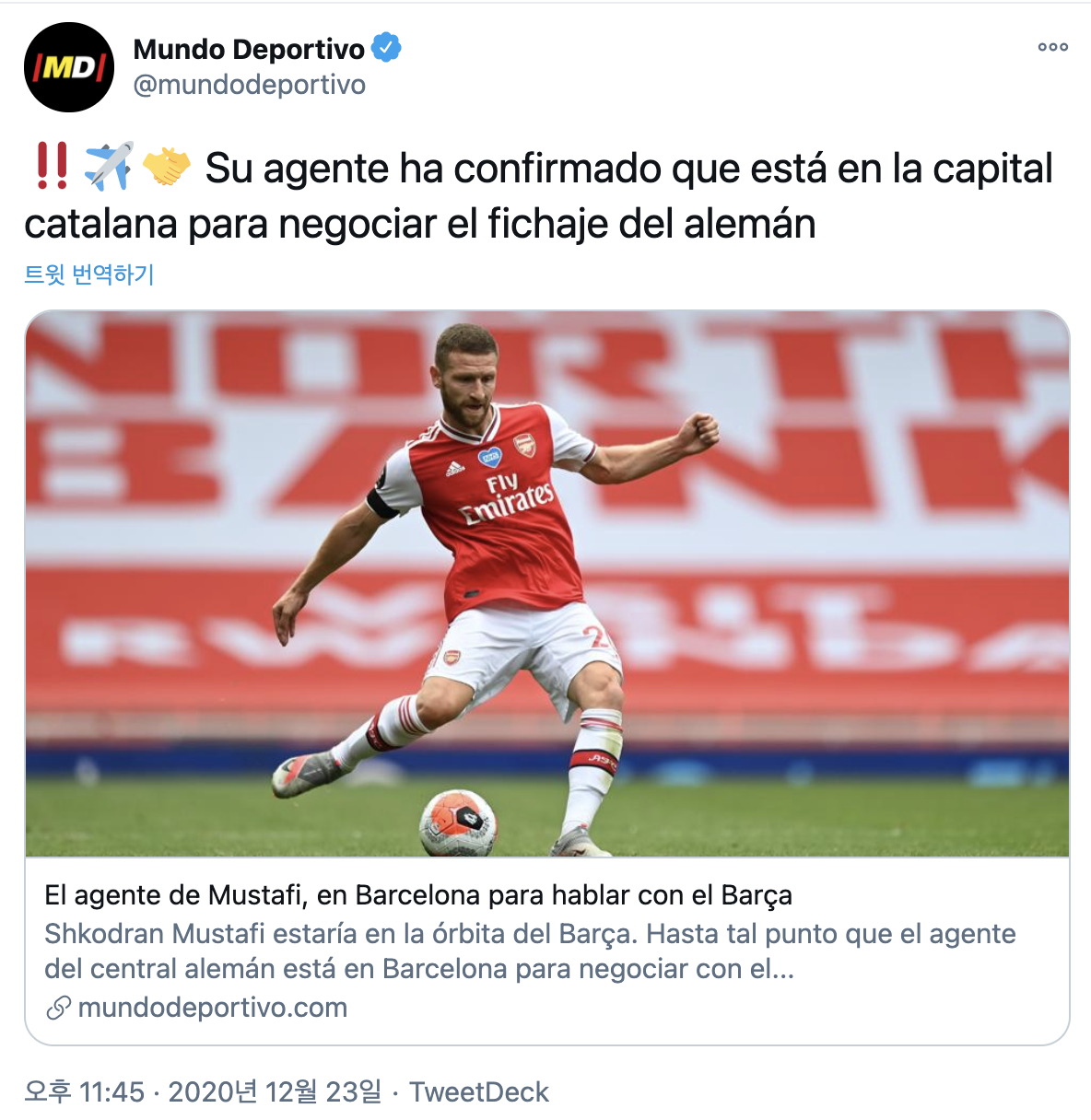 아스널의 수비수 무스타피의 에이전트는 바르셀로나와 협상하기 위해 만났다. 이에 대해 바르셀로나 측은 '예의상' 만남이었고 어떠한 경로(?)를 제공하진 않았다고 명확하게 말했다.