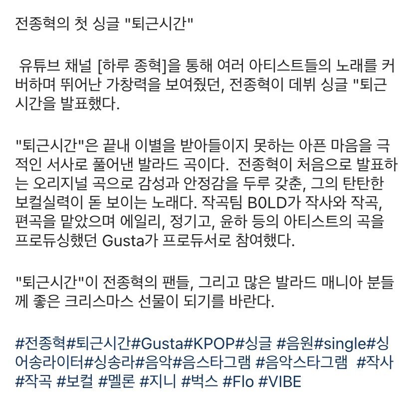 (음원: https://www.melon.com/album/detail.htm?albumId=10538457&ref=copyurl&snsGate=Y )