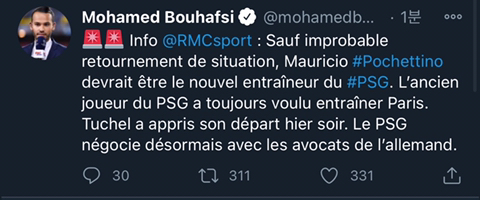 [[모하메드 부합시] 파리의 감독은 포체티노가 될 것]