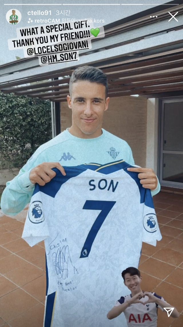 레알 베티스의 크리스티안 테요ㅋㅋ 친구인 로셀소 통해서 손흥민 사인 유니폼 요청해서 받은 듯ㅋㅋㅋㅋ
