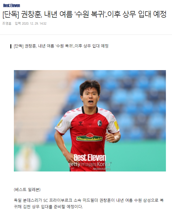 권창훈은 2019년 프라이부르크 이적 당시 팀과 2+2년, 총 4년 계약을 맺었다. 군 문제가 해결되지 않으면 후반 2년 계약이 종료되는 형태였다. 내년 5월이면 계약 기간 2년을 채우는 권창훈이 국내로 복귀하면 프라이부르크와의 계약은 자연스레 만료된다.