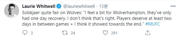 "울버햄튼은 단 하루의 회복 시간만 가졌다. 이건 좀 아닌것같다."