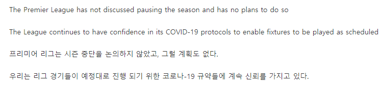 | [오피셜]시즌 중단에 대한 프리미어리그의 입장 | |