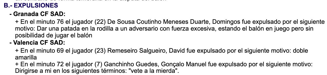 심판 매치 리포트 퇴장 부분에 게데스 퇴장 이유는 "나에게 다음과 같이 말함 : vete la mierda"라고 기록되어 있음