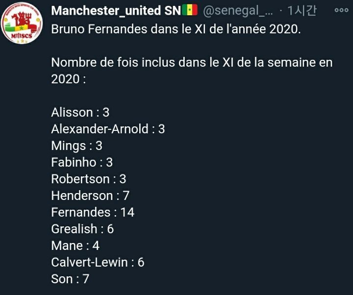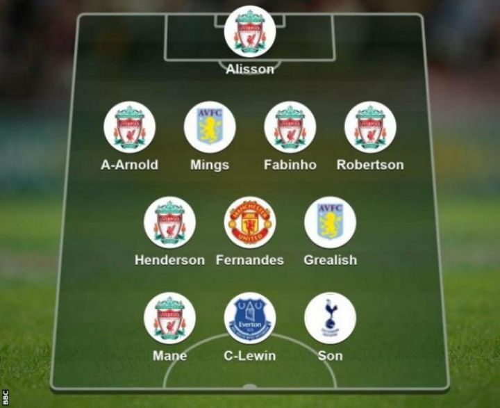 [[BBC] 2020년 PL 올해의 팀 선수들의 이 주의 팀 선정 횟수]