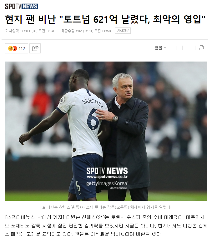 [현지 팬 비난 "토트넘 621억 날렸다, 최악의 영입"]