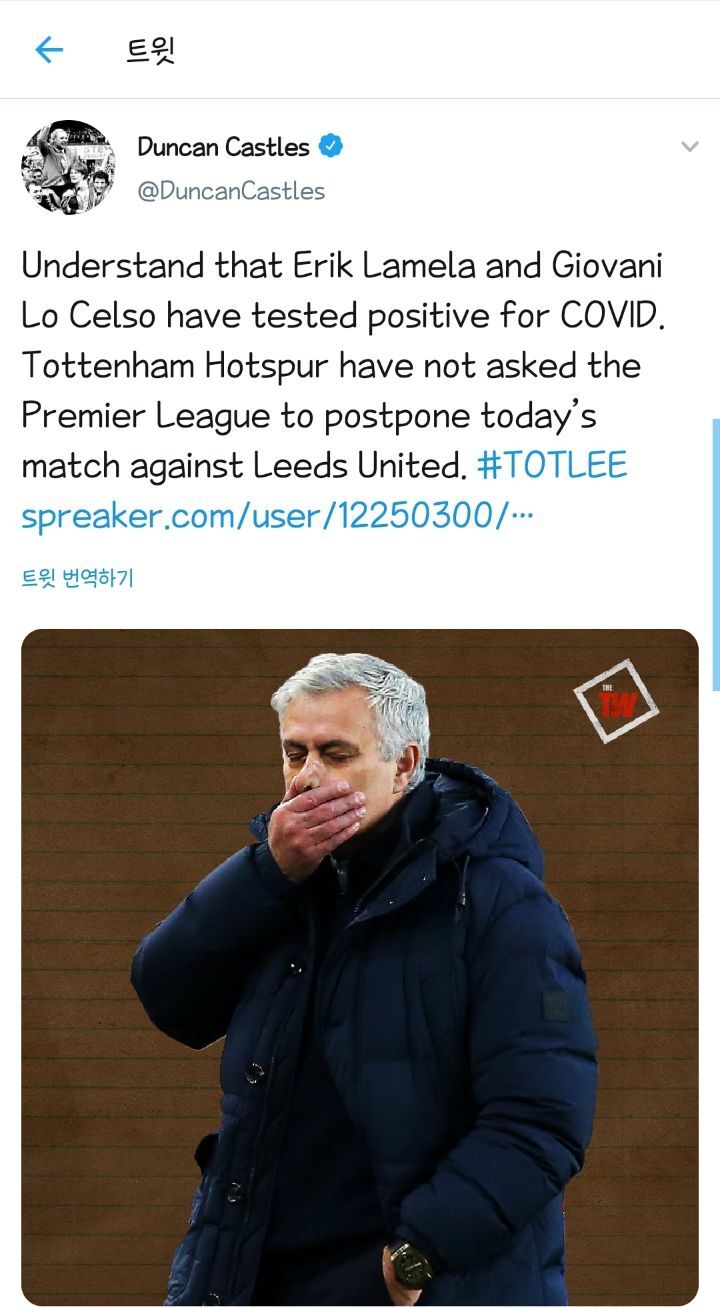 라멜라 로셀소 코로나 양성/리즈전 연기 요청은 안함