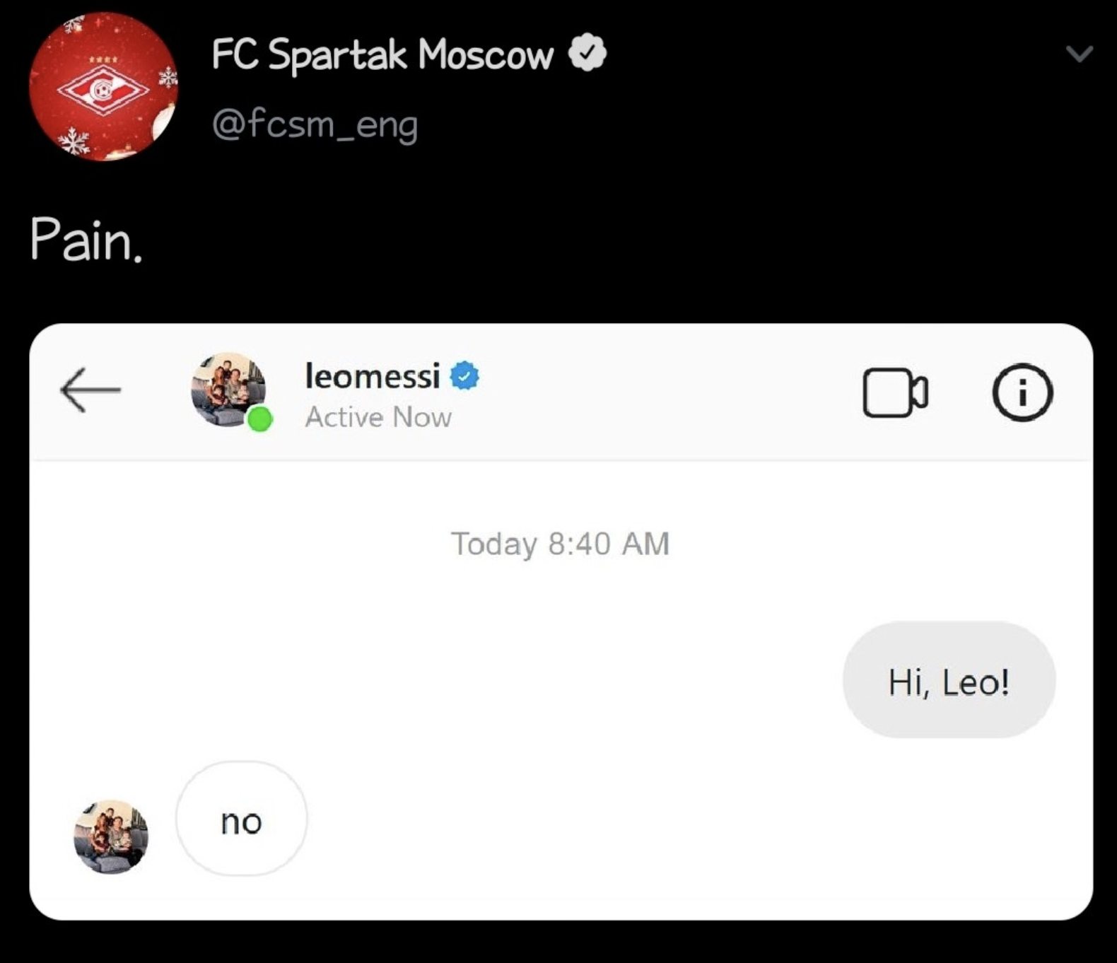 스파르타 모스크바 : "메시한테 인사만 했는데 바로 거절당한 썰푼다"ㅋㅋㅋㅋㅋㅋㅋㅋㅋㅋㅋㅋㅋㅋ