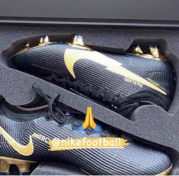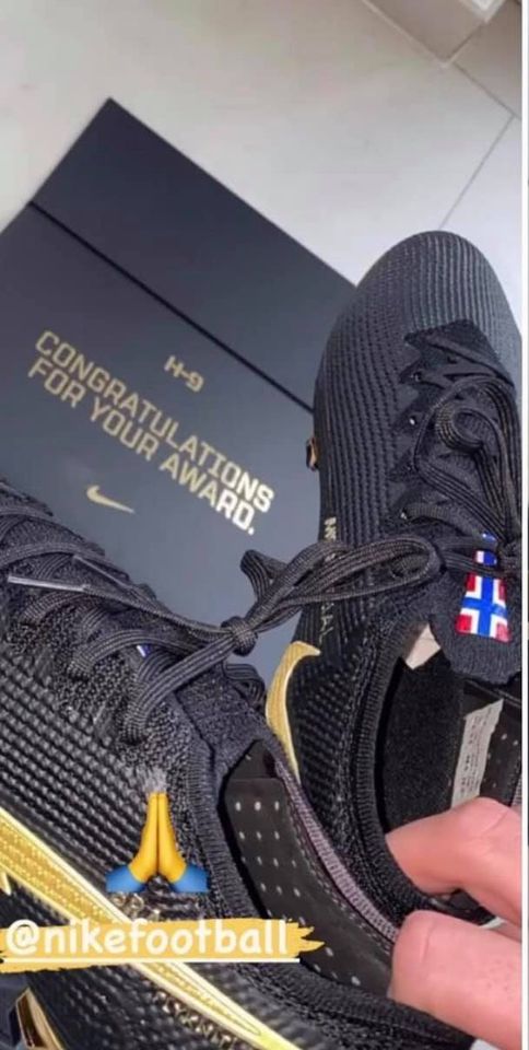 나이키로부터 뜻깊은 선물을 받은 홀란드는 1월 3일 볼프스부르크와의 경기에서 이 축구화를 바로 착용했습니다.