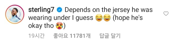 오늘 433 인스타에 올라온 이게 '파울일까 아닐까'란 글에 스털링 - "입고 있는 옷으로 파울을 결정하는 거 같은데 ㅎㅎ" 라며 클롭의 패널티킥 발언을 이어가는듯한 스털링