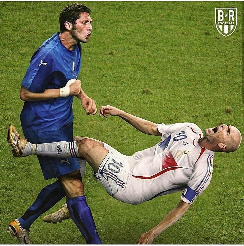 지단의 마지막 월드컵에서 마테라치는 지단의 가슴에 박치기를 꽂는다