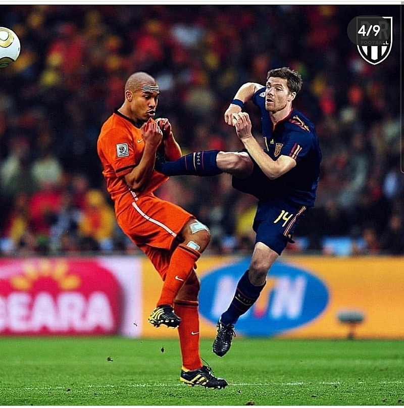네덜란드 VS 스페인 경기에서 알론소는 데 용의 가슴에 쿵푸킥을 날린다