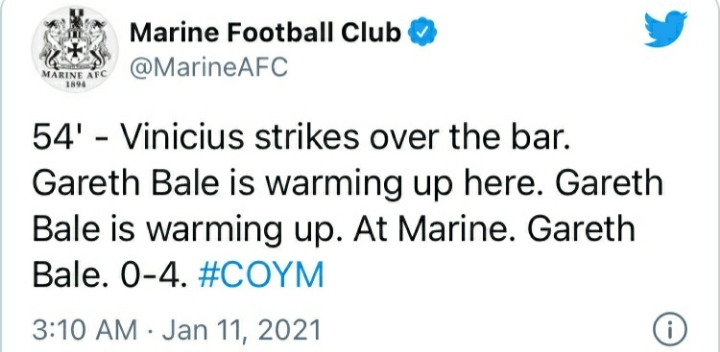 머린 FC 공식 계정 : 가레스 베일이 몸 풀고 있어. 베일이 머린에서 몸을 풀고 있어!
