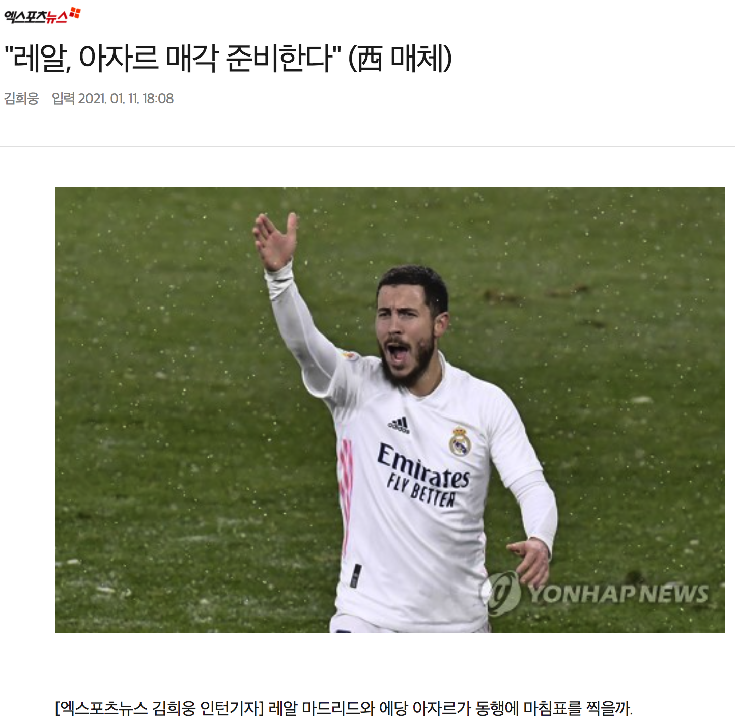 스페인 매체 디아리오 골은 10일(한국 시간) “레알이 여름 이적시장에서 아자르를 매각할 준비를 하고 있다. 아자르 역시 떠날 준비가 된 것처럼 보인다”고 보도했다.