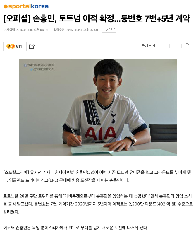 (402억 원, 등번호 7번, 토트넘 이적ㄷㄷ)