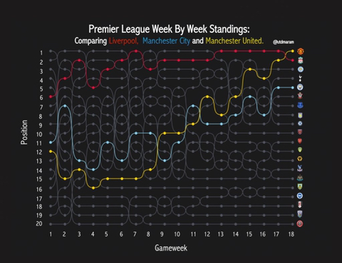 시즌 초지만 16위까지 내려갔던 맨유.....그 이후 꾸준히 올라와 이제는 1위