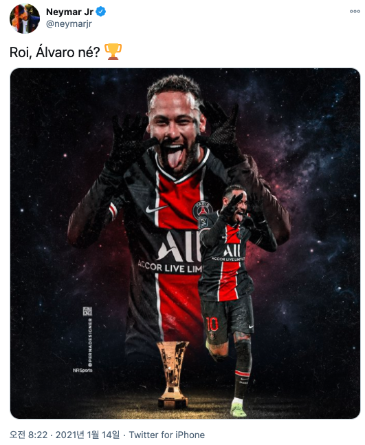 그리고 오늘 프랑스 슈퍼컵에서 파예가 소속된 마르세유를 꺽고 우승한 뒤 파예 저격 영상을 올린 네이마르ㅋㅋㅋ