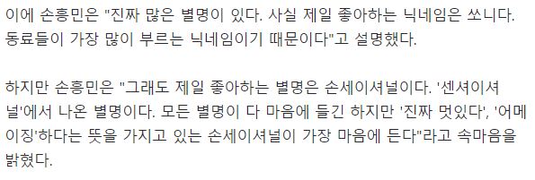 '별명 부자' 손흥민이 가장 좋아하는 별명은?