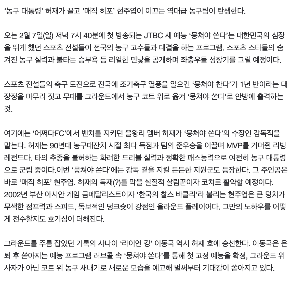 뭉쳐야 찬다의 후속편 뭉쳐야 쏜다에서 농구로 제 2의 인생 시작ㅋㅋㅋㅋㅋ