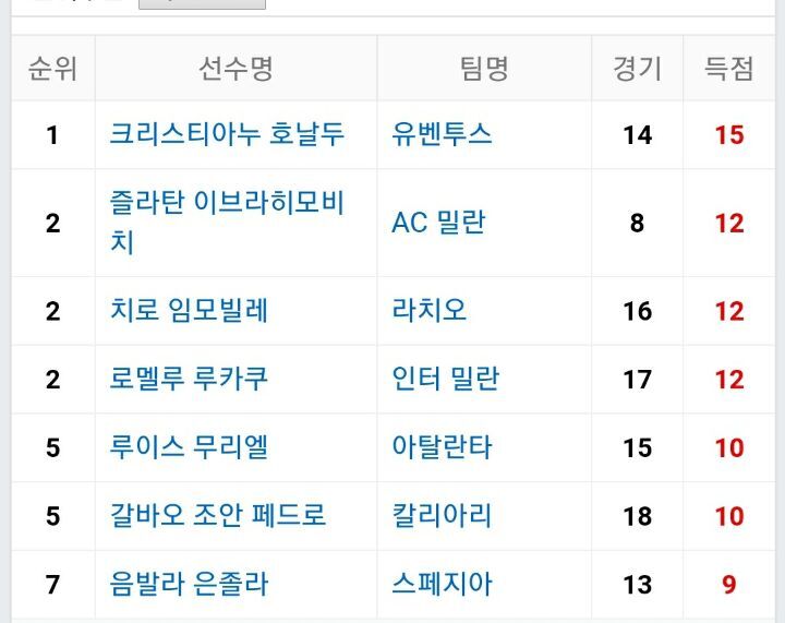 현재 리그 득점 2위로 호날두와 득점왕 경쟁중인 즐라탄