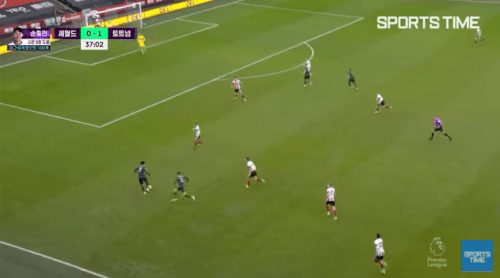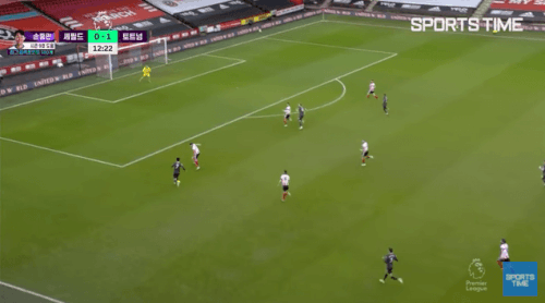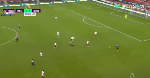 ↓전반전 쏘니 케인에게 2 / 수비와 키커 사이로 패스